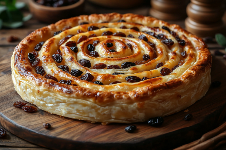 Пирог-улитка из лаваша с творогом и изюмом — это нежная ароматная выпечка с хрустящей корочкой и сладкой начинкой! Сочетание воздушного творога, сочного изюма и тонкого лаваша создает восхитительный контраст текстур.